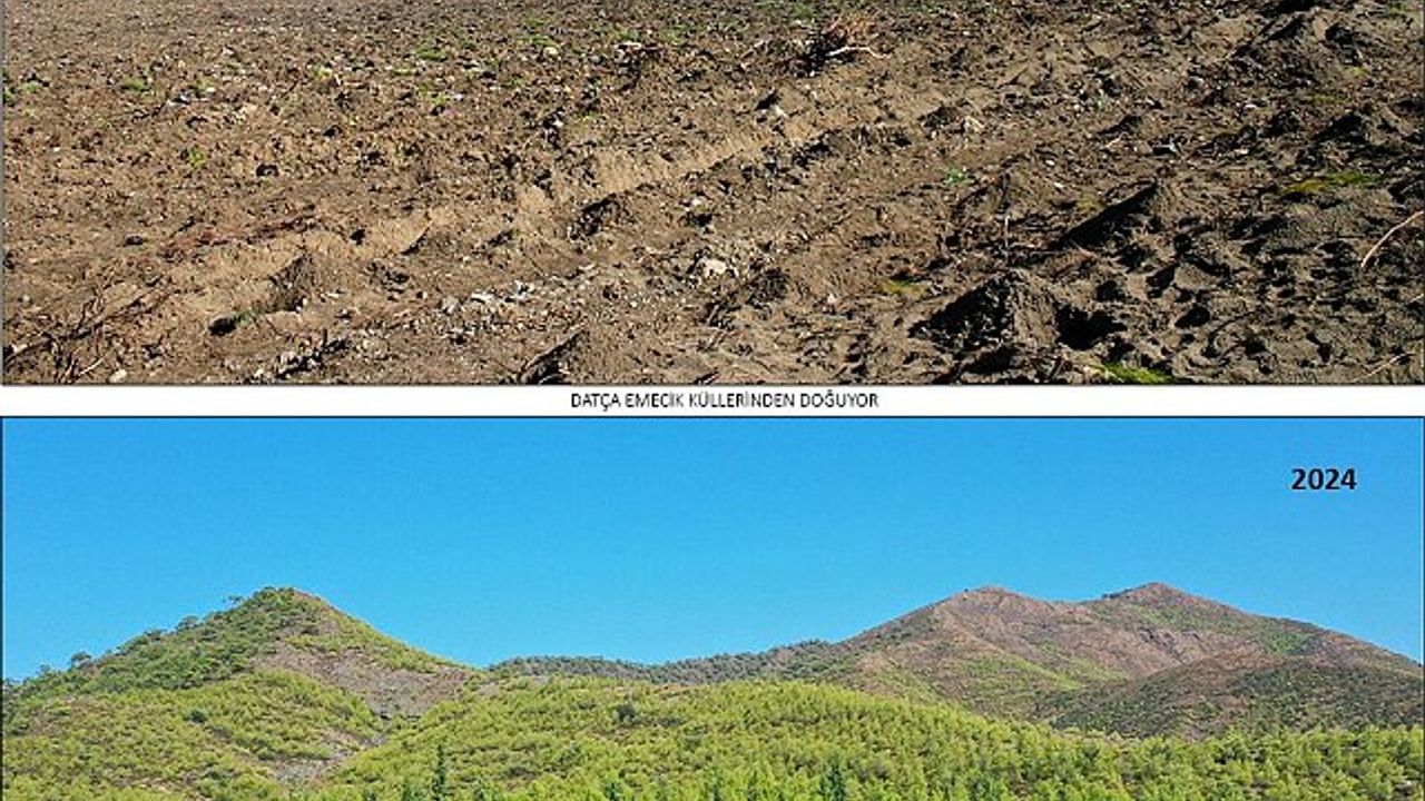 Datça Emecik'te 2006 Eylül'de orman yangını çıktı. Emecik sahil kısmında etkili olan yangında yaklaşık 400 hektar alan zarar gördü. Yangının ardından bölgede ağaçlandırma çalışmalarına hemen başlandı. Yanan alanın büyük kısmı fidan dikilip, ağaçlandırıldı. Emecik'te 19 yıl önce dikilen fidanlar ağaca, ağaçlar ormana dönüştü. Muğla Orman Bölge Müdürlüğü tarafından öncesi ve sonrası olarak paylaşılan fotoğraflarda alanın tamamen yeşile döndüğü görüldü. (DHA)