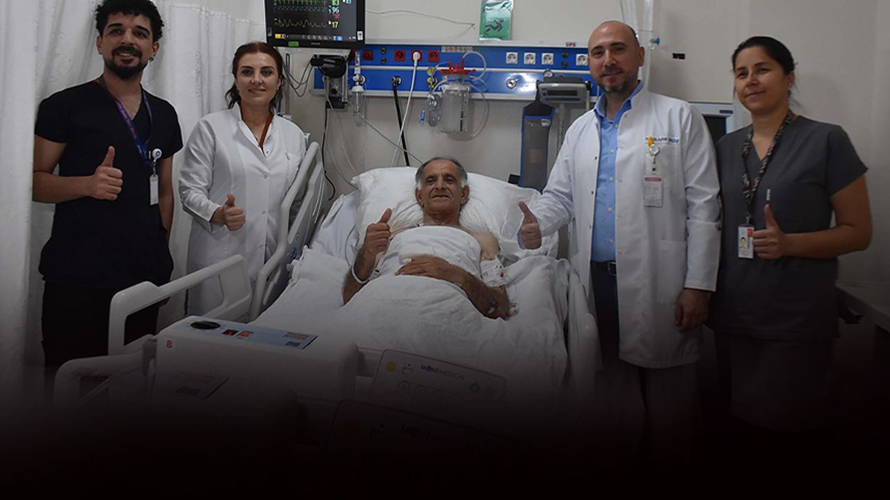 Kardiyoloji Uzmanı Dr. Halil Gülyiğit, hastanın kendilerine geldiğinde bilincinin yerinde olmadığını belirtip, "Akciğerleri makineye bağlıydı, genel durumu kötüydü. Bir kalp damarı tam tıkalıydı. Damarını açtıktan sonra hastanın devrini sağladık" dedi.