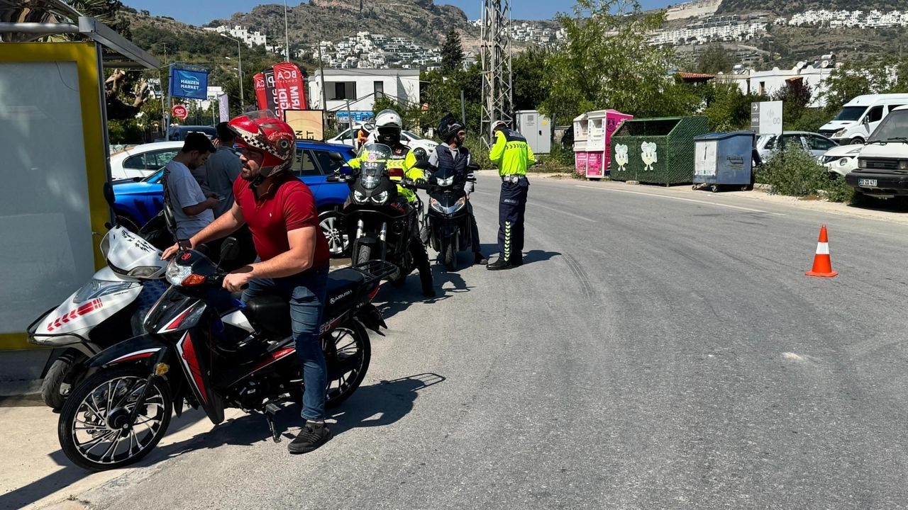 Bodrum İlçe Jandarma Komutanlığı trafik ekipleri Peksimet Mahallesi Kadıkalesi mevkiinde trafik denetimi gerçekleştirdi.