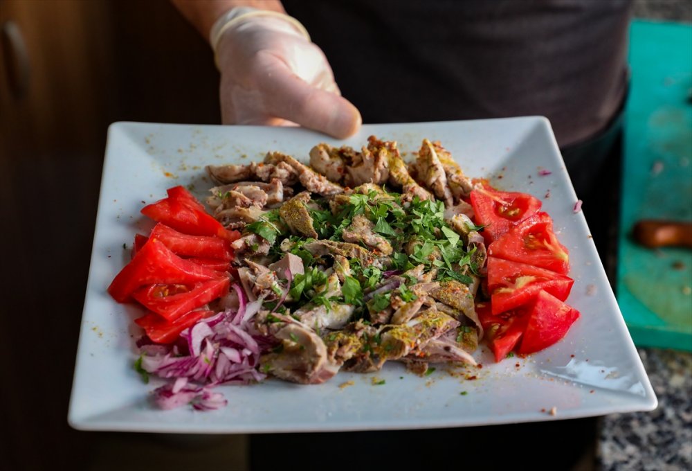 Sadece kuzu kellesinden yapılan söğüşü hazırlayan ustaların mesaisi bir gün önceden başlıyor. Ustaların 4-5 saat kaynattığı kelleler, soğuk suyla yıkandıktan sonra dinlendiriliyor.