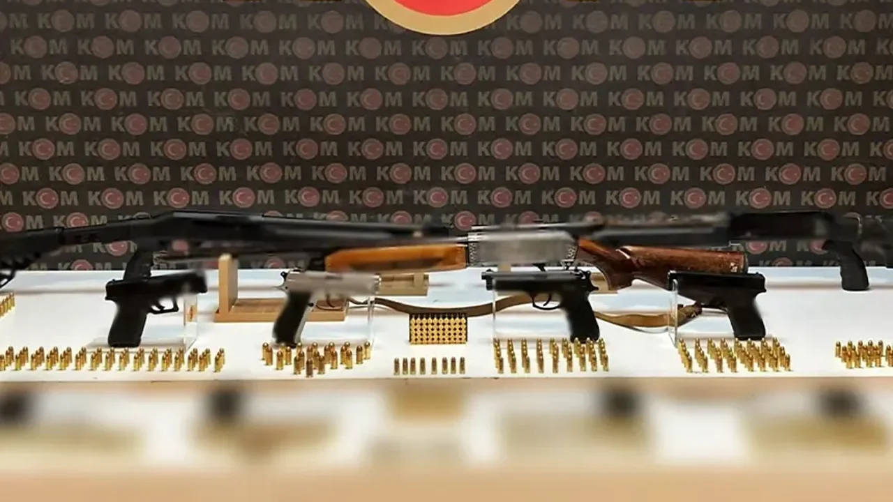 Baskında arama yapan ekipler 4 tabanca, 3 tüfek, şarjörler ve 330 mermi ele geçirdi.