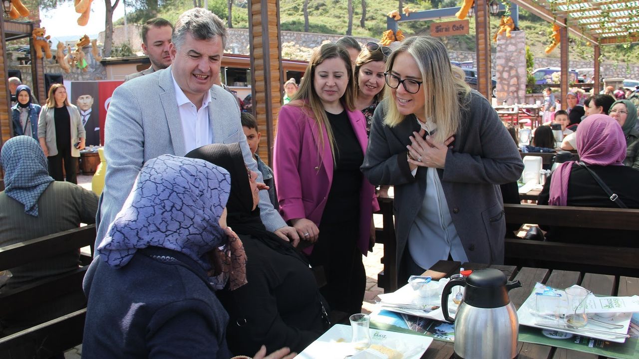 AK Partili Ceyda Bölünmez Çankırı, Bergama'da partisinin seçim koordinasyon merkezinin açılışını gerçekleştirerek vatandaşlarla hatıra fotoğrafı çektirdi.