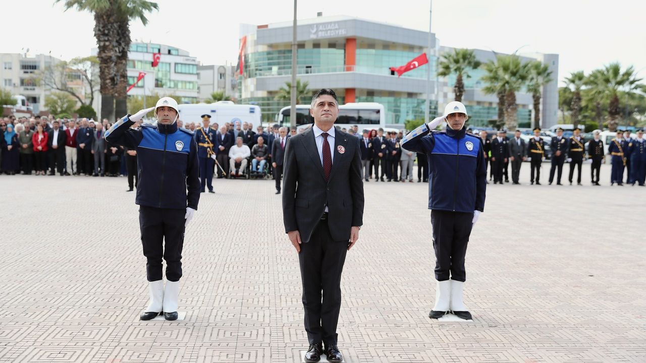 Aliağa’da 29 Ekim Cumhuriyet Bayramı kutlamaları Cumhuriyet Meydanı’ndaki Atatürk Anıtına çelenk sunum töreniyle başladı. Aliağa Kaymakamlığı tarafından düzenlenen törende; Aliağa Kaymakamı Zekeriya Güney, Aliağa Belediye Başkanı Serkan Acar ve Garnizon Komutanı Albay Ali Güler, Atatürk Anıtı’na çelenk sundu. Törene ayrıca Aliağa Cumhuriyet Başsavcısı Serkan Başaran, kurum müdürleri, askeri erkan, belediye meclis üyeleri, muhtarlar, siyasi parti ve sivil toplum kuruluşu temsilcileri, şehit aileleri, gaziler, öğretmenler, öğrenciler ve vatandaşlar katıldı. Çelenk sunumunun ardından saygı duruşunda bulunularak İstiklal Marşı okundu. Cumhuriyet Bayramı’nın ilk gün programı, Aliağa Kabristanlığı’ndaki şehitlik ziyaretiyle sona erdi.