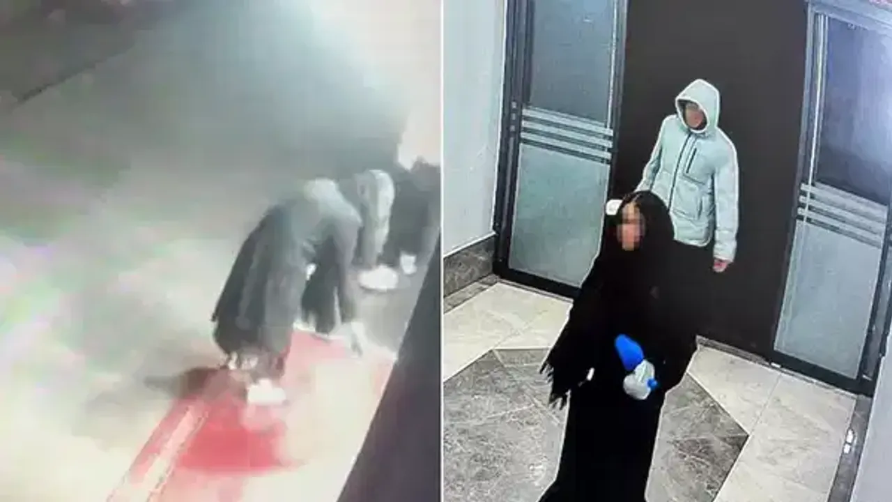 İddiaya göre kapı önlerinde ve binanın koridorlarında sıvı ve toz türü şeyler gören bina sakinleri, durumu anlamak için güvenlik kamerası görüntülerini inceledi.