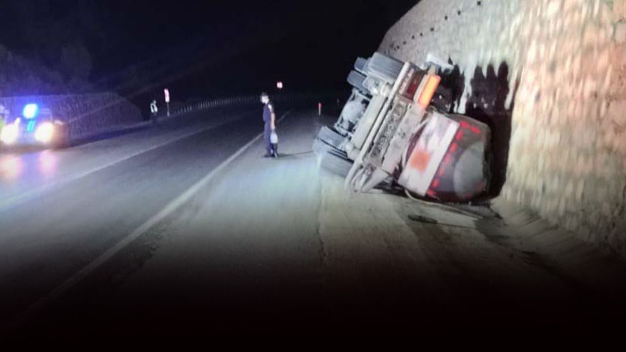 İbrahim B. yönetimindeki 06 DPM 85 plakalı asit yüklü tanker, şoförünün direksiyon kontrolünü yitirmesi sonucu istinat duvarına çarparak devrildi.