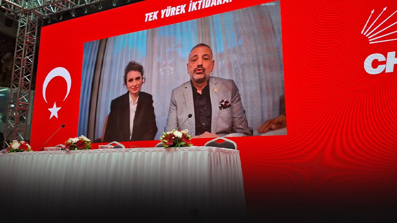 Kongre salonuna tele konferansla bağlanan Aslanoğlu, “Sizi o kadar çok özledim ki, ne isterdim bugün aranızda bulunmayı, sizlerle kucaklaşmayı. 105 bir başıma tuttukları hapisten sonra şimdi ev hapsindeyim. Son 1 yıldır var olan adaletsizliklerden ben de payıma düşeni alıyorum. İnsanları alabildiğine sevmeyi bırakmazlar yanına, böyle çekersin cezanı. Tek suç ortağımız kitaplar. Hapisteki yoldaşların selamını getirdim sizi. Tunç Soyer’in, Heval Savaş Kaya’nın, Barış Karcı’nın selamını getirdim” dedi ve Aslanoğlu cezaevinde bulunan tüm CHP’lilerin isimlerini sayarak selamlarını salona iletti.