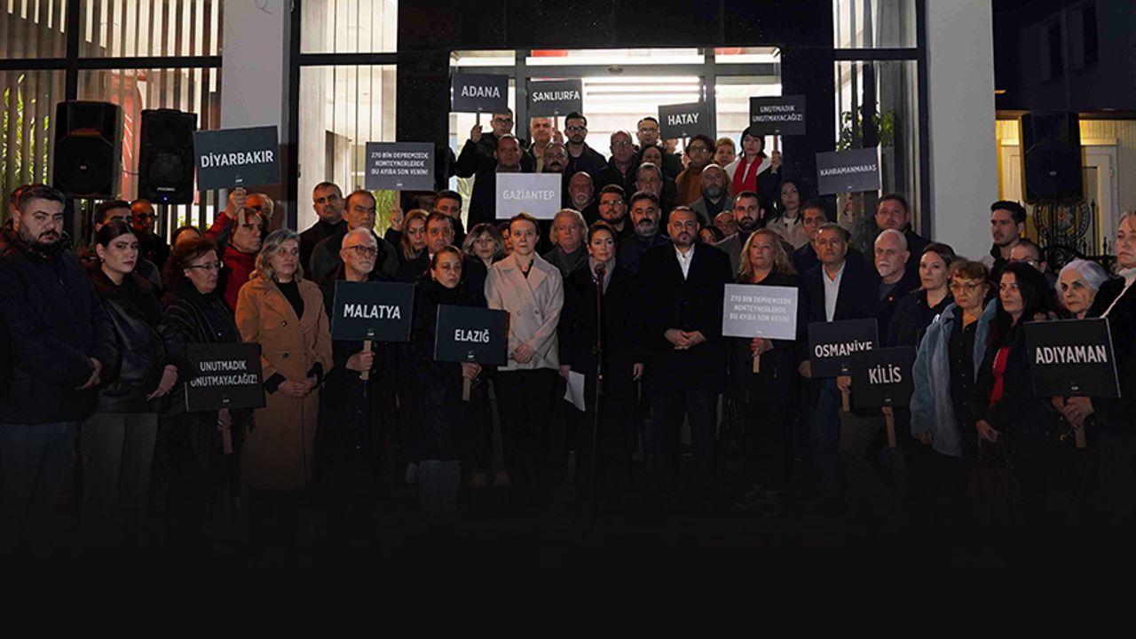 CHP İzmir İl Başkanlığı önünde İlk depremin yaşandığı sabaha karşı 04.17’de yapılan ve saygı duruşu ile başlayan törene CHP İzmir İl Yönetim Kurulu, İzmir Büyükşehir Belediye Başkan Vekili Zafer Levent Yıldır, CHP Konak İlçe Başkanı Serkan Kalmaz, Konak Belediye Başkanı Nilüfer Çınarlı Mutlu, parti üyeleri ve vatandaşlar katıldı. Törene katılanlar ellerinde depremden etkilenen illerin isimleri ve “270 bin depremzede konteynerlerde yaşıyor bu ayıba son verin” yazan dövizler taşıdı.