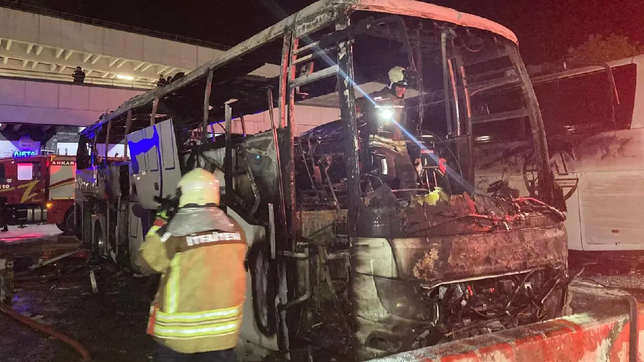 Ankara Şehirler Arası Otobüs Terminali’nde (AŞTİ) gece saatlerinde park halindeki 19 KK 454 plakalı yolcu otobüsünde henüz belirlenemeyen bir nedenle yangın çıktı. Alevleri fark edenlerin ihbarı üzerine olay yerine gelen itfaiye ekipleri yangına müdahale etti.