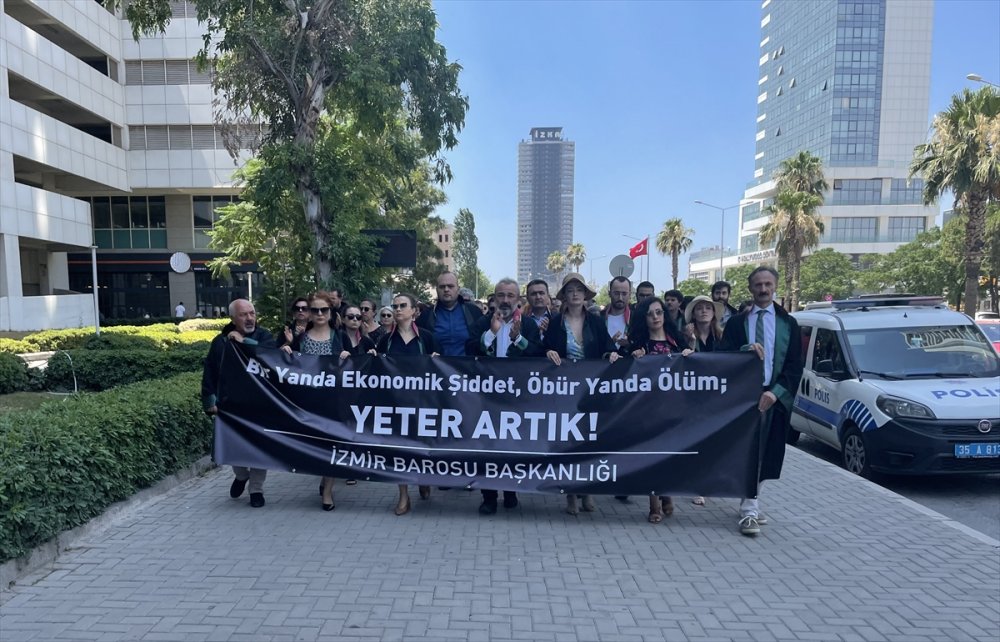 İzmir Adliyesi C kapısı önünde toplanan avukatlar adına konuşan Baro Başkanı Özkan Yücel, meslektaşlarının mesleki faaliyetleri nedeniyle saldırıya uğrayarak öldürülmesi nedeniyle çok üzgün olduklarını ifade etti.