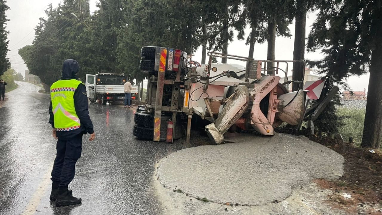 Sezai Akın idaresindeki 09 R 5386 plakalı beton mikseri, Ağaçlı Mahallesi’nde kontrolden çıkarak devrildi.