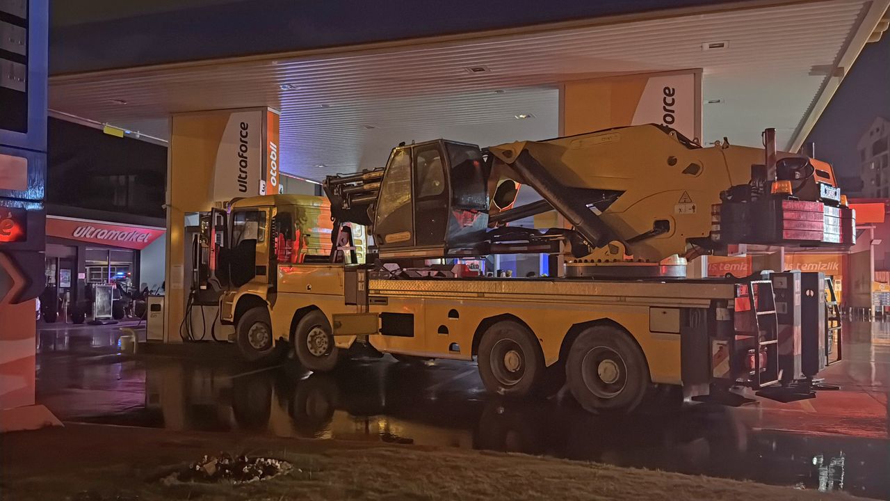 AYDIN (AA) - Aydın'ın Efeler ilçesinde vincin akaryakıt istasyonuna girmesi sonucu hasar oluştu.