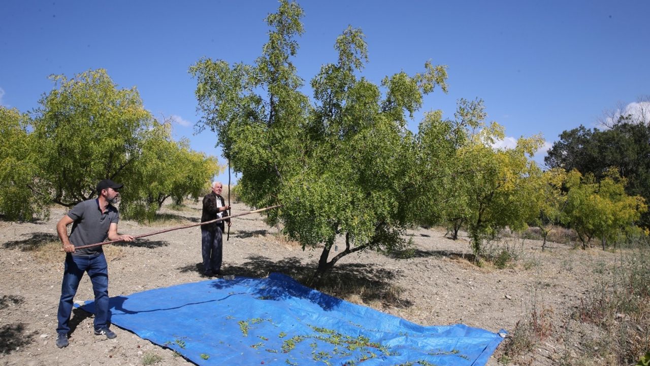 Bir sonbahar meyvesi olan hünnap, ağaçların altına serilen örtülere dallardan çırpılan meyvelerin düşürülmesiyle hasat ediliyor.