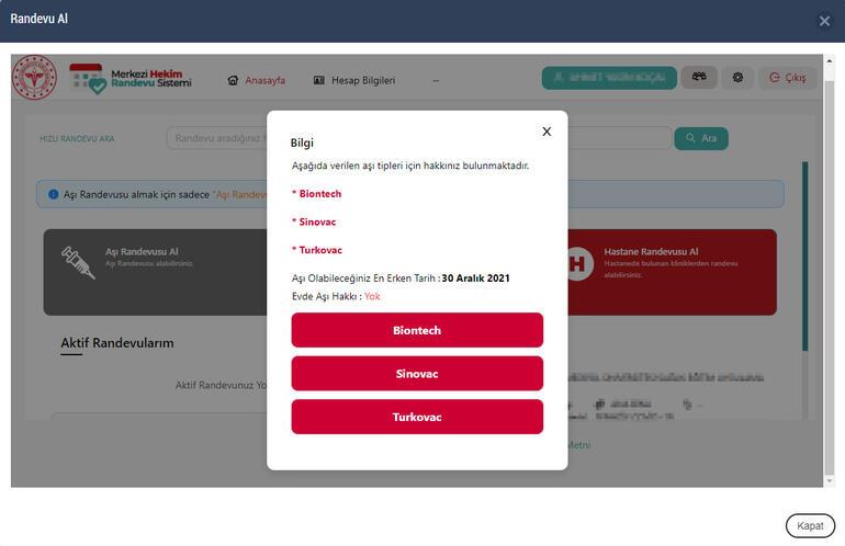 Sağlık Bakanlığı'nın E-Nabız sisteminde TURKOVAC aşısı için randevular başladı.