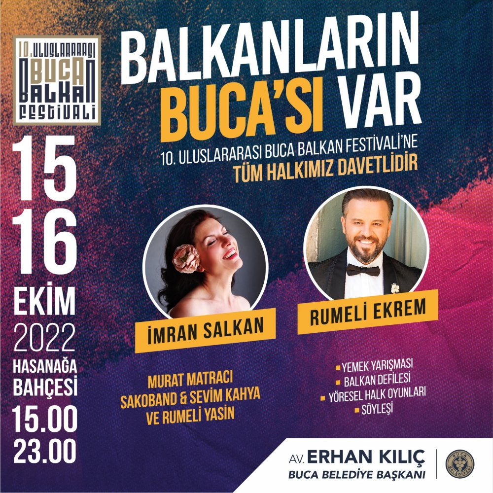 Balkan kültürünü yaşatmak amacıyla bu yıl 10. kez düzenlenecek Uluslararası Buca Balkan Festivali, 15 Ekim Cumartesi saat 15.30’da Demokrasi Meydanı’ndan Hasanağa Bahçesi’ne bando eşliğinde kortej yürüyüşüyle başlayacak.
