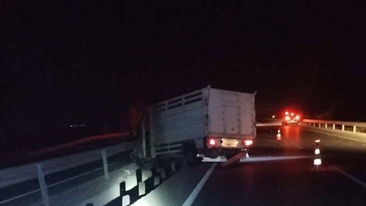F.G. (46) idaresindeki 08 AU 425 plakalı kamyonet, Afyonkarahisar-Ankara kara yolu Camili köyü yakınlarında refüjdeki bariyere çarptı.