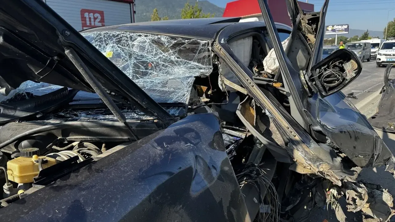 Bariyere saplanan araçtaki 2 kişi ağır yaralandı