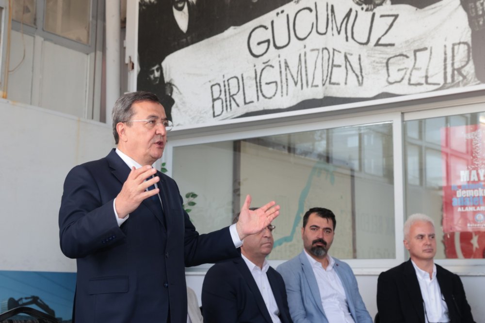Temizlik İşleri Müdürlüğü şantiyesinde yaptığı konuşmada “Çok değerli emekçi kardeşlerim” diyerek belediye çalışanlarına seslenen Başkan Batur, önce tüm personelin Ramazan Bayramı’nı kutladı ve aileleriyle sağlıklı, huzurlu bir bayram geçirmelerini temenni etti. 1 Mayıs İşçi Bayramı’nı da kutlayan Başkan Batur, “Birlikte değiştireceğiz” diyerek kararlılık ve mücadele vurgusu yaptığı konuşmasında şunları söyledi:
