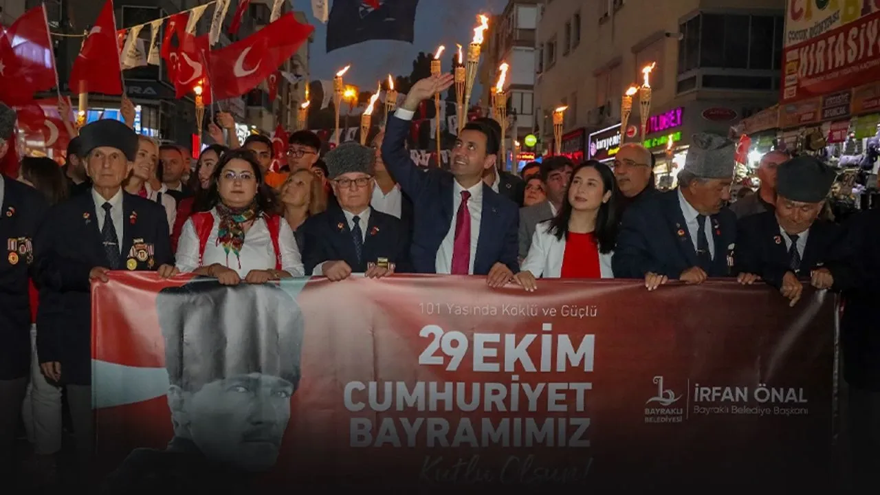 Cumhuriyet korteji saat 18.00’de Özkanlar Migros önünden başlayacak. Bando eşliğinde marşların söyleneceği yürüyüşe, 7’den 70’e tüm Bayraklılılar katılacak. Kortej, Şehit Hakan Ünal Parkı’nda sona erecek. Burada Bayraklı Belediyesi Halk Oyunları kursiyerleri tarafından Zeybek gösterisi sunulacak. Gösterinin ardından yerel sanatçılar sahne alacak. Sanatçılar, Atatürk’ün sevdiği şarkıları seslendirerek Cumhuriyet coşkusunu doruğa taşıyacak.