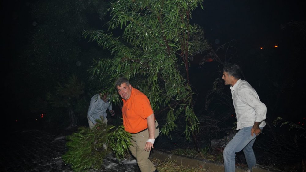Gözyaşlarına hakim olamayan Başkan Oran “Çeşme maalesef cehennemi yaşadı. Bizim bölgemizde iki ayrı yangın oldu. Bir yangının büyük bölümü makilik ve fundalık alanda oldu. Diğer yangın ardıç ve çam ağaçlarımız yandı. Gerçekten çok canımız yandı. Delikli koya inen bölgede çamlarımız yandı. Konut bölgesine çok yakındı. İki siteye çok yakındı. İnsanlar çok büyük korkular yaşandı. Çok şükür can kaybı olmadı. Ben kendi gözlerimle gördüm Karaköy olduğu bölgede yangından kaçan tavşanları gördüm. Boz tavşanı görünce Allah dedim. Fırtınalı günde iki tane yangın Çeşme’ye çok geldi. Arada da bir tane de ev yangını oldu. Evet, üzüldük, çok sıkıldık ama bugünden itibaren yaralarımızı sarmaya başlayacağız. Biz çok zor günler atlattık. Havadan müdahale güneş batana kadar yeterliydi. Gece sıfırdı. Çünkü gece görüşlü hava unsuru yoktu. Güneş doğana kadar İzmir Büyükşehir Belediyesi itfaiyesi, İZSU araçları orman bölge müdürlüğü, jandarma ve emniyet TOMA’ları Çeşme Belediyesi’nin araçları ve AFAD’a bağlı sonradan gönderilen araçlarla müdahale edildi. Sabaha kadar çalışan bütün personele çok teşekkür ediyoruz. Zordu, ama çok şükür atlattık. Az zararla atlattık diyemiyoruz. Canımız, ciğerimiz yandı. Hiç olmasa can kaybımız olmadı” dedi.