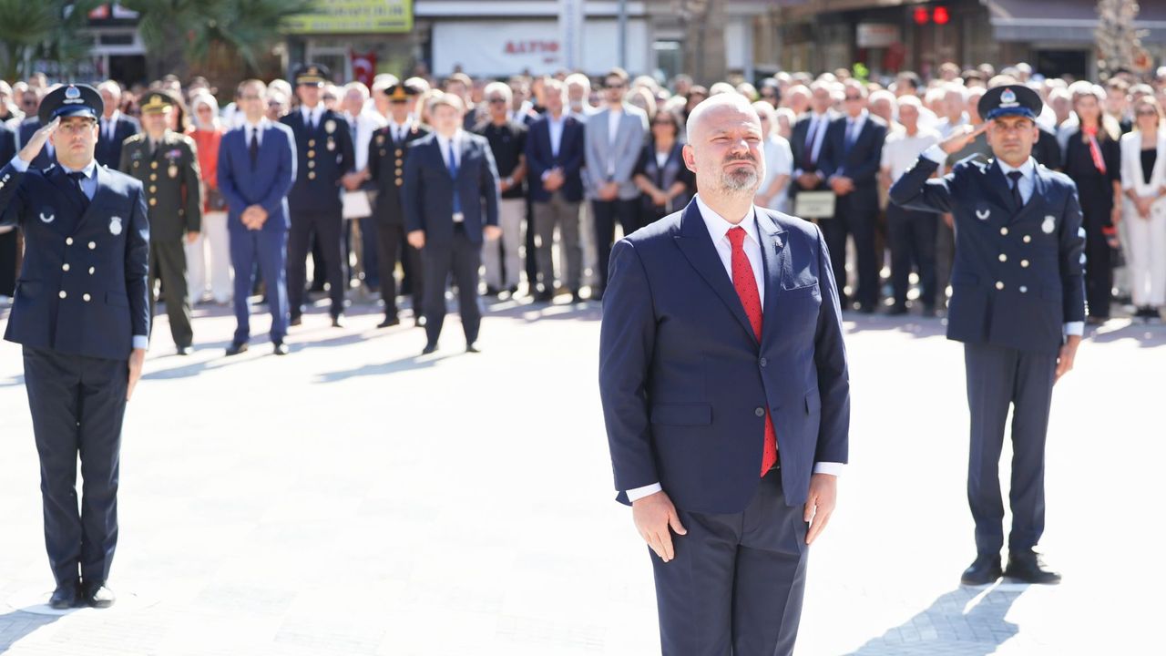 Saygı duruşu, İstiklal Marşı ve çelenk sunumuyla başlayan törende konuşan Menemen Belediye Başkanı Aydın Pehlivan, "Ne yazık ki dün sabah aldığımız şehit haberleri yüreklerimizi dağlamıştır. Aziz şehitlerimize duyduğumuz saygı gereği, dün ve bu akşam yapılması planlanan konser etkinliklerimizi iptal ettik. Şehitlerimizin ruhları şad, mekânları cennet olsun. Bugün burada tüm şehitlerimizin aziz hatıraları önünde de bir kez daha saygıyla eğiliyoruz. 26 Ağustos’ta Afyon Kocatepe’den başlayan Büyük Taarruz, milletimizin yeniden doğuş destanıydı. Ve 9 Eylül sabahı İzmir’e giren kahraman Mehmetçiklerimiz, sadece bir şehri kurtarmadı; milletimizin kaderini değiştirdi, Cumhuriyetimizin yolunu açtı. Ulu Önder Gazi Mustafa Kemal Atatürk’ün, 'Özgürlük ve bağımsızlık benim karakterimdir' sözü, bugün de bizim yolumuzu aydınlatıyor. 'Ya istiklal ya ölüm!' diyerek ayağa kalkan o ruh, bugün de dimdik ayaktadır! Bugün bizlere düşen görev, bu aziz emanete sahip çıkmak; Cumhuriyetimizi, bayrağımızı, birliğimizi ve beraberliğimizi sonsuza kadar yaşatmaktır. Merhum Mehmet Akif’in dediği gibi Allah bu millete bir daha İstiklal Marşı yazdırmasın! Ve biz, Menemen olarak, İzmir olarak, Türkiye olarak söz veriyoruz; tükenmedik, tükenmeyeceğiz! Düşmana geçit vermedik, vermeyeceğiz! Cumhuriyetimizi yıktırmadık, asla da yıktırmayacağız! İzmir’imizin ve Menemen’imizin kurtuluşunun 103. yıl dönümünü yürekten kutluyorum. Başta Gazi Mustafa Kemal Atatürk ve silah arkadaşları olmak üzere, Hasan Tahsin’i, Kaymakam Kemal Bey’i ve bütün şehitlerimizi rahmetle, minnetle, şükranla anıyorum. Ruhları şad olsun. Yaşasın 9 Eylül! Yaşasın İzmir! Yaşasın Menemen! Yaşasın Türkiye Cumhuriyeti! Ne mutlu Türk'üm diyene!” dedi.