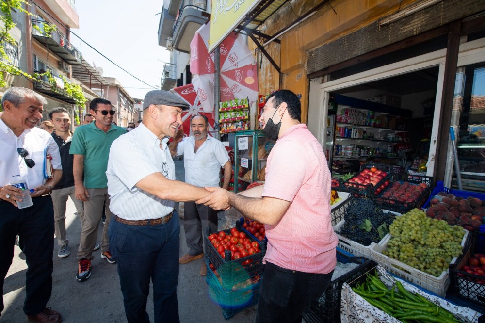 Başkan Tunç Soyer, Kent Gözlemcisi ve Yazar Orhan Beşikçi, İzmir Büyükşehir Belediyesi Genel Sekreter Yardımcısı Ertuğrul Tugay ve rehberler eşliğinde 2 saat boyunca Basmane'yi gezdi, bölgede yaşayanlarla da sohbet ederek onların sorunlarını dinledi.