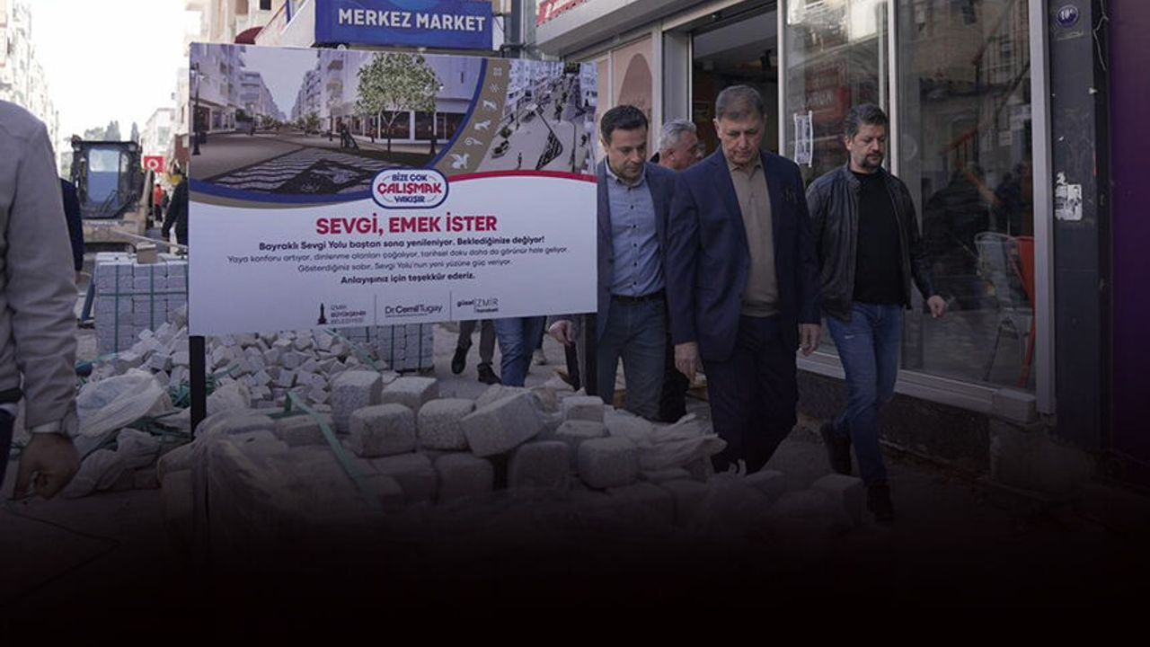 İzmir Büyükşehir Belediye Başkanı Dr. Cemil Tugay öncülüğünde başlatılan Güzel İzmir Hareketi kapsamında Bayraklı Sevgi Yolu baştan sona yenileniyor. Başkan Tugay, yürütülen düzenleme çalışmalarını yerinde denetleyerek İzmir Büyükşehir Belediyesi Yol Yapım, Bakım ve Onarım Daire Başkanı Selahattin Mamikoğlu ve İZBETON Genel Müdürü Gökhan Kara ile birlikte sahadaki ekiplerden bilgi aldı, işçilere kolay gelsin dileklerini iletti. Tugay, esnafla bir araya gelerek, bölgenin daha düzenli ve estetik bir görünüme kavuşması için belediye olarak titizlikle çalıştıklarını vurguladı.