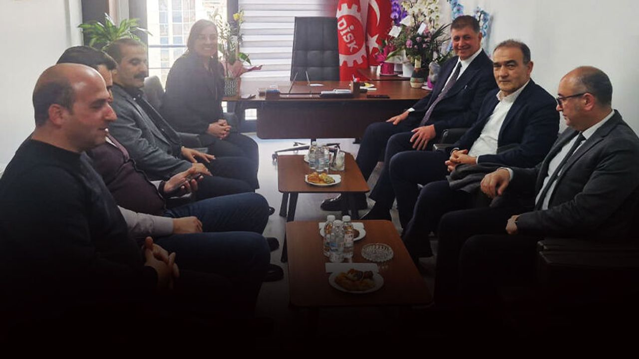 GÜNDEME BAKIŞ - İzmir Büyükşehir Belediye Başkanı Cemil Tugay, DİSK Ege Bölge Temsilciliği görevine getirilen Deniz Şahin Gümüştekin'e tebrik ziyaretinde bulundu. DİSK Ege Bölge Temsilciliği binasında gerçekleştirilen ziyarete şube temsilcileri de katıldı. Burada açıklamalarda bulunan Tugay, sendika ve belediyenin birlik içinde olması gerektiğini belirtti. Tugay, "Ben her zaman çalışma arkadaşlarımıza sahip çıkıp haklarını almaları için elimden geleni yaptım. Yapabildiğimiz yapıyoruz yapamadığımız için de anlayış bekliyoruz" ifadelerini kullandı.