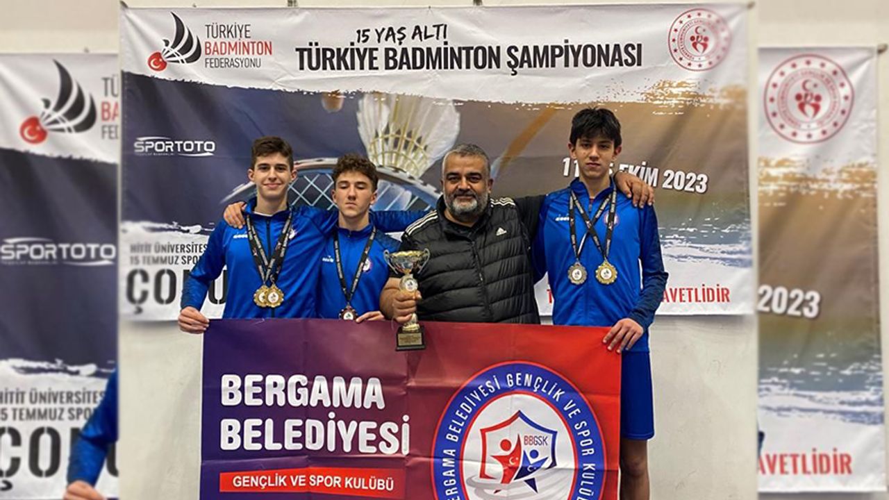 50 ilden yaklaşık 700 sporcunun katıldığı şampiyonada Bergama Belediyesi Badminton Takımı’nın rüzgârı esti. Tek Erkekler Kategorisi’nde Erdal Mert Demirhan birinci, Deniz Baran Karaman ikinci, Rüzgar Oğuz üçüncülüğe yerleşerek Tek Erkekler kategorisini doldurdular. Çift Erkekler Kategorisi’nde de birinciliğe oturan Erdal Mert Demirhan ve Deniz Baran Karaman 15 Yaş Altı Türkiye Badminton Şampiyonasına adlarını altın harflerle yazdırdılar.