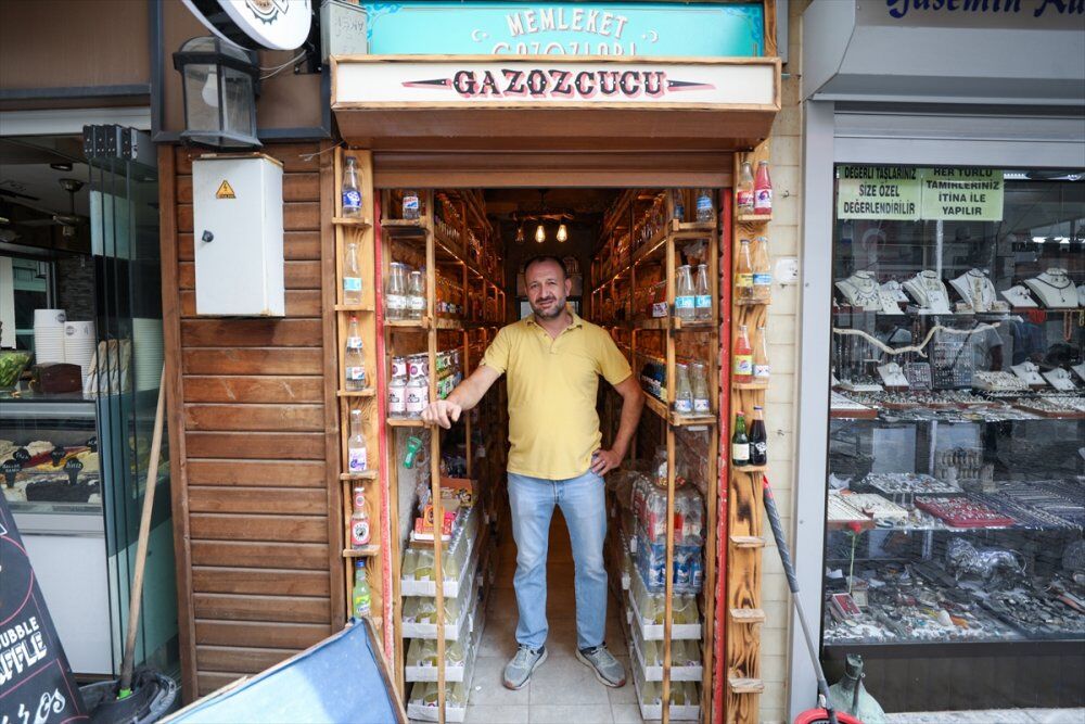 "Denizli'nin lavanta, şeftali gazozu en çok sattığımız gazozlardan bir tanesi. Datça'nın bademli gazozu var. Bodrum mandalina var. Bu kadar ilgi olunca gazozların bir kısmını diğer dükkana aldık. Orada rahatlıkla gelip oturup gazoz içip gidiyorlar. Günde buraya 500-600 kişi gelip fotoğraf çekiyor. Güzel ilgi odağı oldu. Severek de yapıyoruz. Aynı zamanda hobimiz. Hem ticaret hem hobi gibi gidiyoruz."