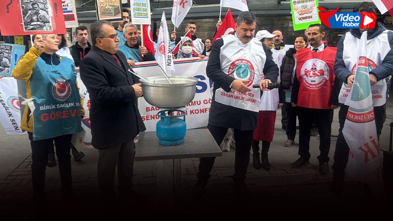 GÜNDEME BAKIŞ - Birlik Sağlık Sendikası üyeleri, memur maaşlarına yapılan 6 aylık yüzde 18,60’lık zammı protesto etti. Sendika üyeleri, “Memur taş mı yesin?” diyerek kazanda taş kaynattı. Eylemde Birlik Sağlık Sen Genel Başkanı ve BASK (Bağımsız Kamu Görevlileri Sendikaları Konfederasyonu) Genel Sekreteri Ahmet Doğruyol açıklamalarda bulundu: