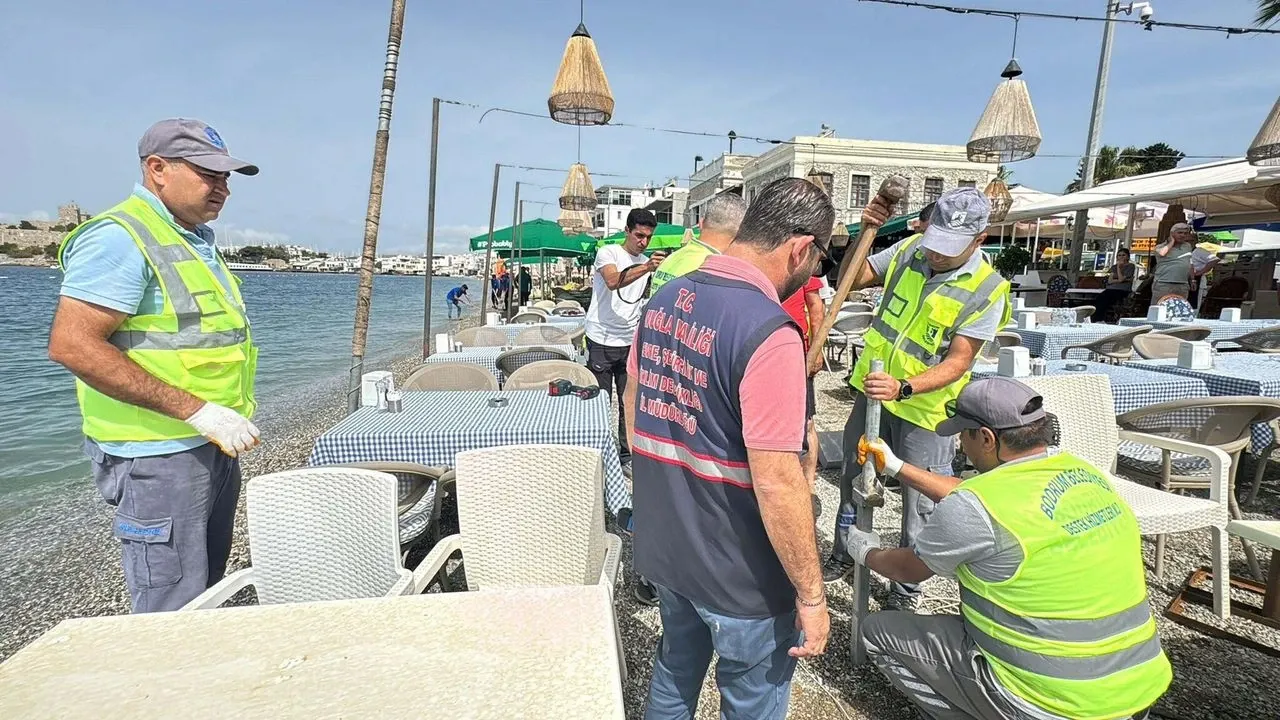 Muğla'nın Bodrum ilçesinde, işletmelerin denize sıfır noktada faaliyet göstermesinin önüne geçmek amacıyla, sahil ile en yakın işletme arasında 1.5 ila 4 metre arasında şeritleme yapıldı.