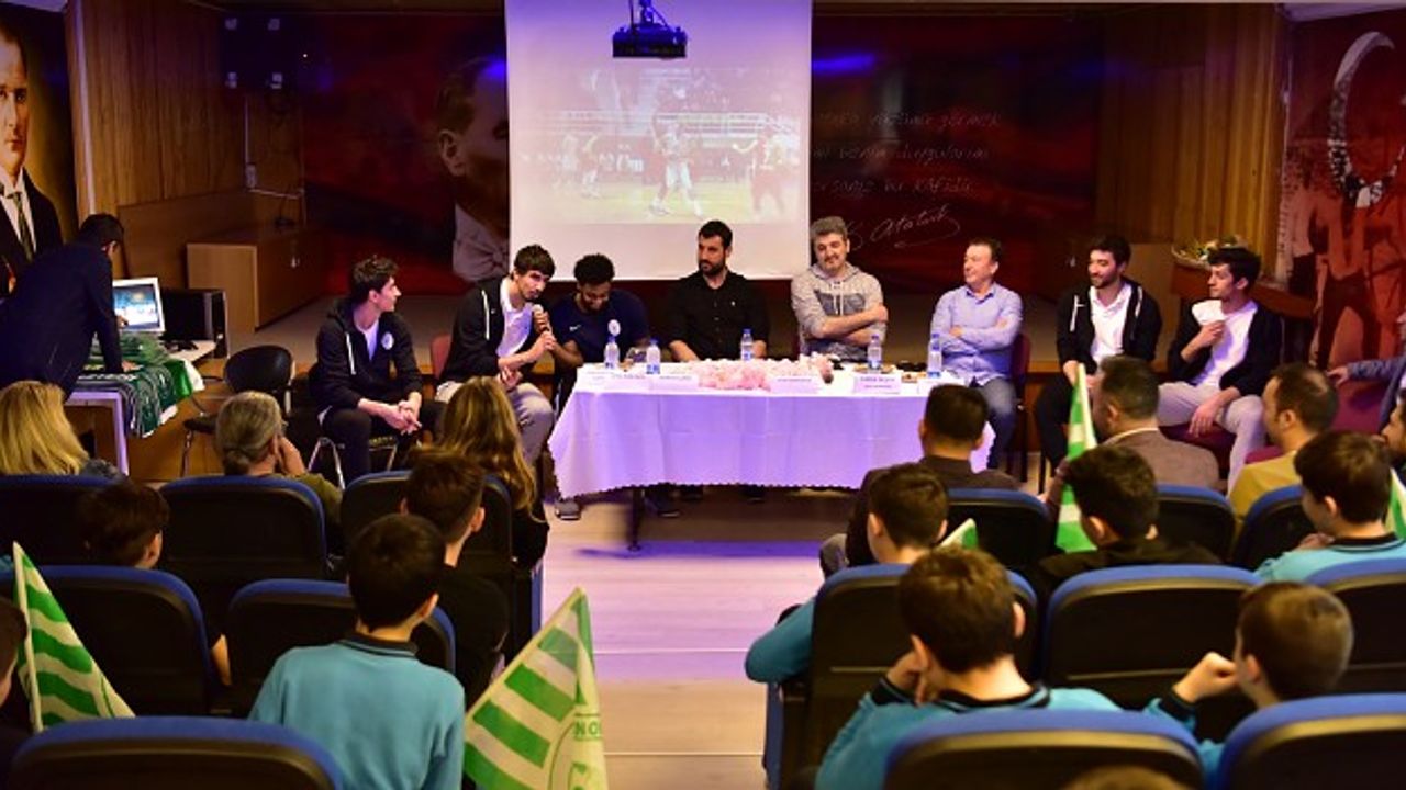 Bornova Belediyespor Koordinatörü Adnan Özbağcı, Yeşil-beyazlı ekibin menajeri Çağlar Karabulut, Başantrenör Faruk Beşok, Takım Kaptanı Eren Ocaktürk, Amerikalı Oyuncu Donte Clark ve genç isimler Arda Berk Kaya, Ata Kahraman ile Yiğitcan Tekin basketbol tutkunu öğrencilerin sorularını yanıtladı.
