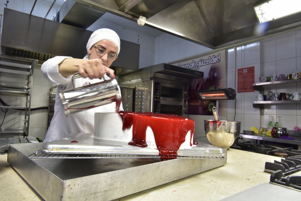 Bornova Belediyesi’nin Altın Bilezik Projesi kapsamında vatandaşlara meslek edindirmek için düzenlediği Pastacılık Kursu devam ediyor. 3.5 ay sürecek eğitimlerin sonunda uluslararası geçerliliğe sahip kalfalık belgesini alacak olan katılımcıların yaptığı çalışmalar da göz dolduruyor. Eğitimlerde kurabiye ve pasta yapımını öğrenen kursiyerler 14 Şubat Sevgililer Günü için de özel bir çalışma gerçekleştirdi. Güne özel olarak tasarladıkları pasta ve kurabiyeleri kırmızı, beyaz, pembe şeker hamuru ve soslarla süsleyerek paketledi.
