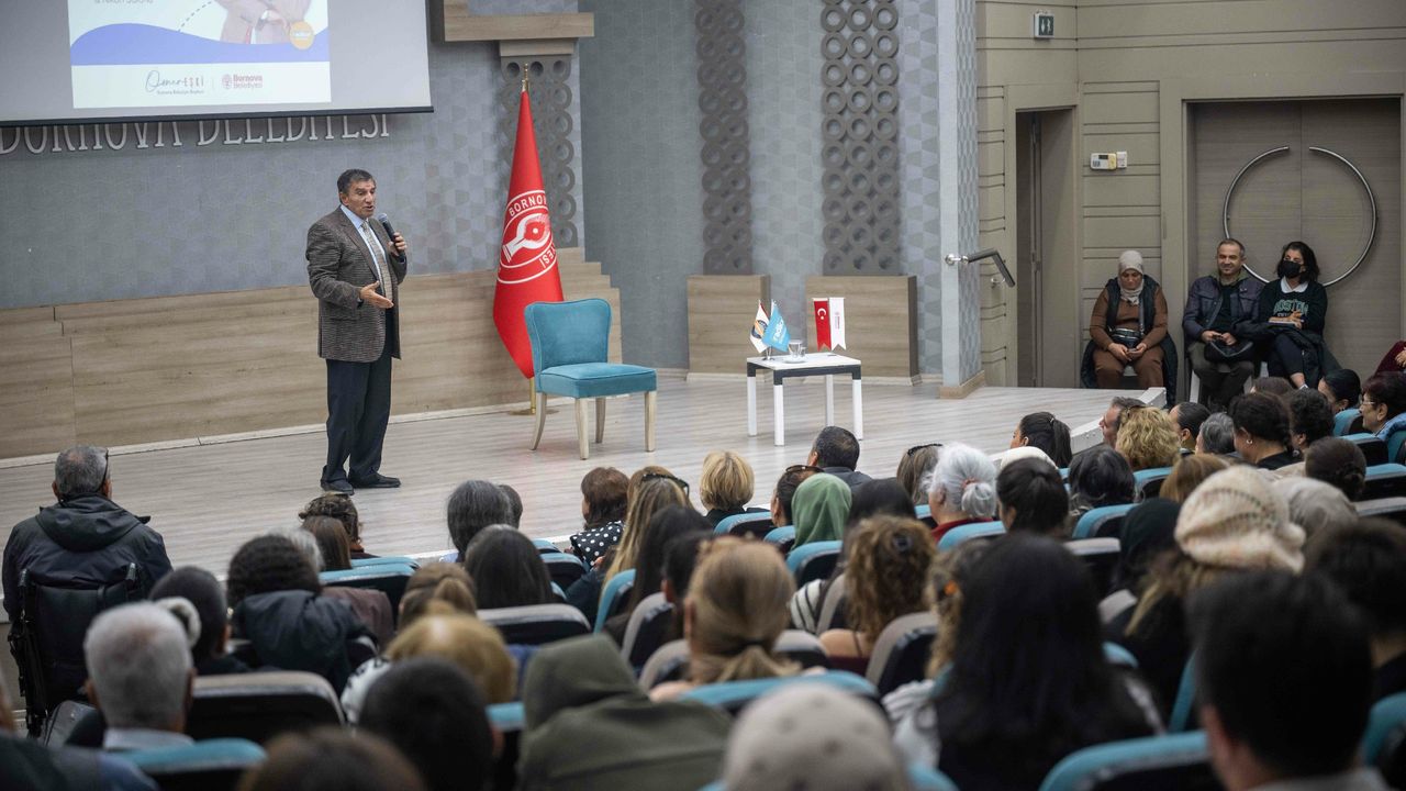 Bornova Belediyesi Kadın ve Aile Hizmetleri koordinasyonunda Radikal Okulları ile işbirliğiyle gerçekleştirilen konferans, ünlü psikolog, yazar ve televizyon programcısı Prof. Dr. Üstün Dökmen’in katılımıyla Nevzat Kavalar Kültür Merkezi’nde gerçekleşti. Öğretmenlerin, öğrencilerin ve velilerin yoğun ilgi gösterdiği etkinlikte salon tamamen doldu.