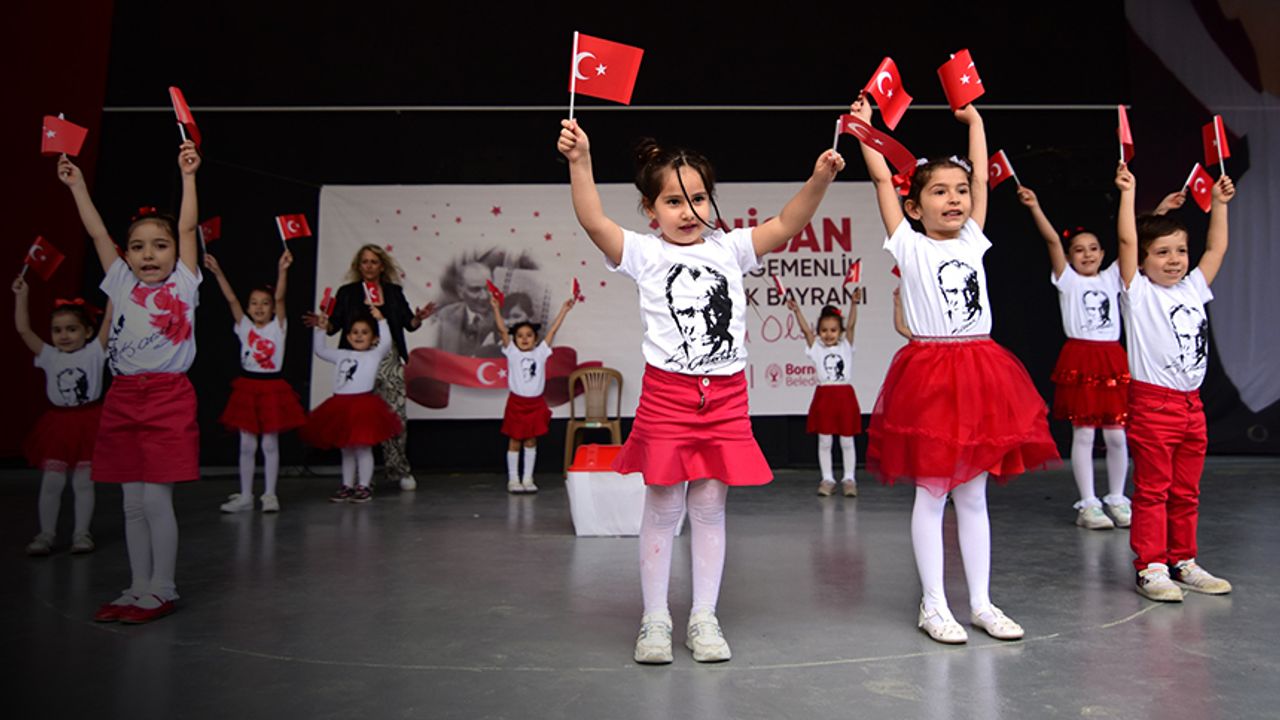 Bornova Belediyesi’nin Altındağ, Evka 3, Mevlana, Naldöken, Pınarbaşı, Serintepe, Atatürk Mahallesi ve Doğanlar’da iki nokta olmak üzere açtığı toplam 9 Çocuk Oyun Aktivite Merkezi’nden yararlanan minikler 23 Nisan’a özel olarak hazırlanan programla Bornovalılar’ın karşısına çıktı. Bornova Belediyesi Ayfer Feray Açıkhava Tiyatrosu’nda her merkezin ayrı gruplar halinde birer gösteri ile sahne aldığı etkinlik, ailelere duygu dolu anlar yaşattı. Anne ve babalar cep telefonları ile çocuklarının görüntüsü ve fotoğrafını çekmek için birbiriyle yarıştı. Çoğu ilk kez sahneye çıkan 3-6 yaş arası 500 çocuk performanslarıyla büyük alkış aldı. Etkinliğin sonunda tüm çocuklar sahnede hatıra fotoğrafı çektirip İzmir Marşı’nı coşkuyla hep bir ağızdan söyledi.