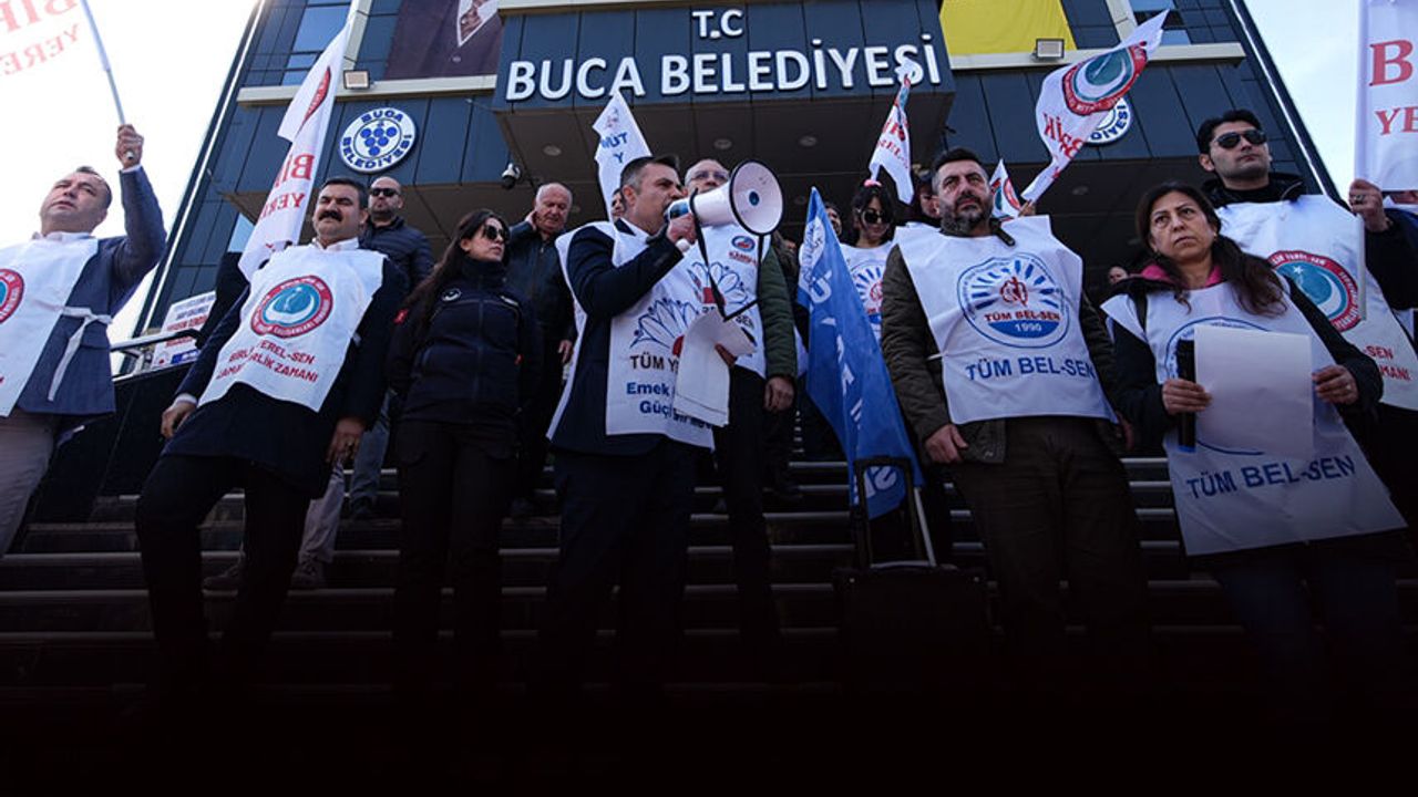 Tüm Yerel Sen İzmir 2 No'lu Şube Eğitim ve Basın Sekreteri Özgür Duran ise 'Buca Belediyesi bünyesinde görev yapan kamu emekçilerinin 7 aydır ödenmeyen sosyal denge tazminatları, 2 yıldır yatırılmayan arazi tazminatları ve ödenmeyen performans ücretlerini dile getirmek için bir aradayız. Sosyal denge tazminatı bir lütuf değildir. Bu hak toplu sözleşme ile kazanılmış, yasal güvence altına alınmış bir haktır. Bu hakkı ödememek hem hukuksuzluktur hem de açık bir yönetim zaafıdır. Bitmeyen harcamalar, ihaleler, personel alımları, diğer yanda evine ekmek götürmekte zorlanan ay sonunu getiremeyen emekçiler. Bu kurumda memur emekçileri neden hep üye evlat muamelesi görmektedir? Alacaklarımız ile ilgili işçisiyle, memuruyla Buca Belediyemizde yapılan bu haksızlığı Buca halkının vicdanına bırakıyoruz' dedi. (DHA)