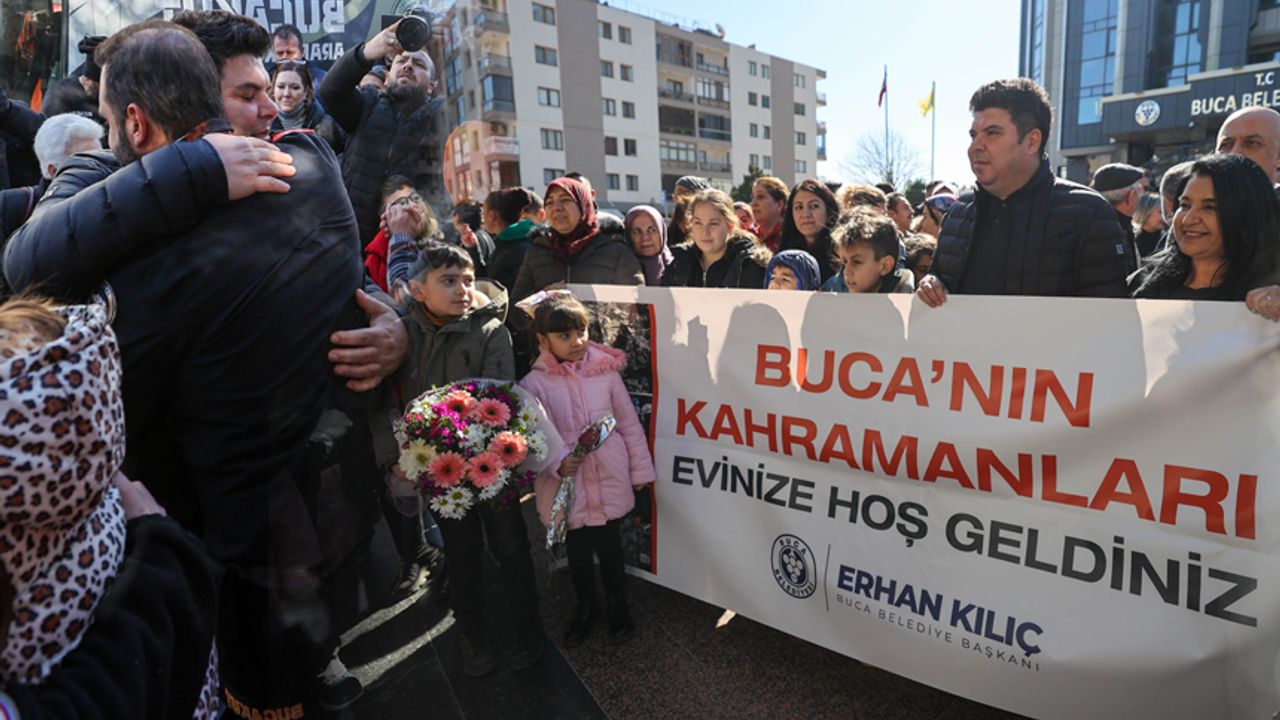 Büyük bir titizlikle sürdürdüğü çalışmalarını tamamlayan BUCAKUT, eve dönüş yaptı. BUCAKUT üyelerini Buca Belediyesi önünde Belediye Başkanı Erhan Kılıç, mesai arkadaşları, aileleri ve Bucalılardan oluşan büyük bir kalabalık karşıladı. Duygu dolu anların yaşandığı karşılamada konuşan Buca Belediye Başkanı Kılıç, İzmir depreminin ardından bir arama kurtarma birimi kurmak için harekete geçtiklerini hatırlatarak, “2 yıl boyunca almamız gereken bütün eğitimleri aldık. BUCAKUT’a hiç iş düşmesin isterdik. Yaşadığımız deprem gibi kurtaracağı nokta olmasın isterdik ama maalesef Türkiye deprem bölgesi, deprem gerçeği var ve büyük bir felaket yaşandı. Depremin olduğu ilk andan itibaren BUCAKUT derhal harekete geçti. Çok büyük bir acının içinde olduğumuz bugünlerde, sizin çalışmalarınız asla unutulmayacak. İyi ki varsınız. Sizinle gurur duyuyorum” dedi.