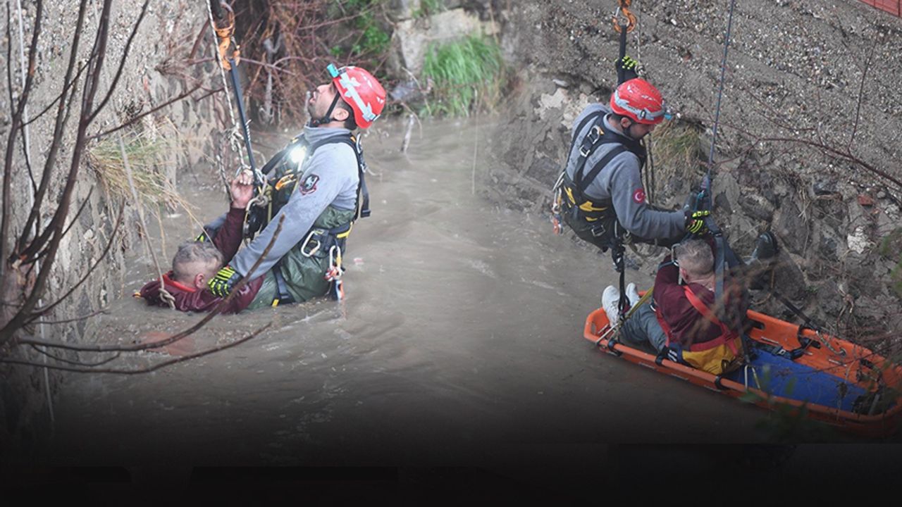 İzmir’de etkili olan sağanak yağış sırasında, 50–55 yaşlarındaki bir erkek Yeşildere’de dere içinde uyuduğu sırada yükselen sulara kapıldı. Yaklaşık 20 metre sürüklenen kişiyi tutunduğu noktada, ihbar üzerine olay yerine gelen İzmir Büyükşehir Belediyesi İtfaiye Dairesi Başkanlığı ekipleri kurtardı. Su seviyesinin yaklaşık 2 metreye ulaştığı dereye vinç yardımıyla inen ekipler vatandaşı bulunduğu noktadan kurtardı. Sedye ile yaklaşık 10 metrelik duvardan çıkarılan yurttaş, sağlık ekiplerine teslim edilerek hastaneye sevk edildi.