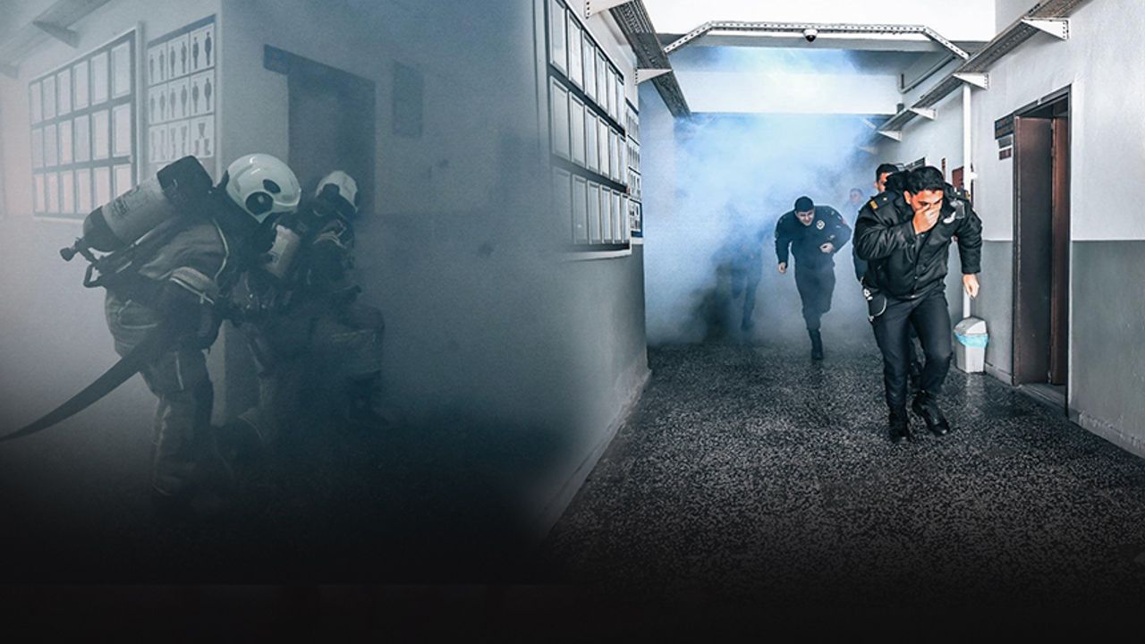 İzmir Büyükşehir Belediyesi İtfaiye Dairesi Başkanlığı ekipleri tarafından Buca’da bulunan Rüştü Ünsal Polis Meslek Yüksekokulu’nda yangın tatbikatı gerçekleştirildi. Tatbikat senaryosuna göre, 4 katlı binanın zemin katında yer alan bir derslikte elektrik hatlarından kaynaklanan bir yangın çıktı. Dumanların hızla binayı sarması üzerine vakit kaybetmeden 112 Acil Çağrı Merkezi’ne haber verildi. İhbar üzerine kısa sürede olay yerine ulaşan itfaiye ekipleri, yangına hızla müdahale ederek alevleri kontrol altına almayı başardı.