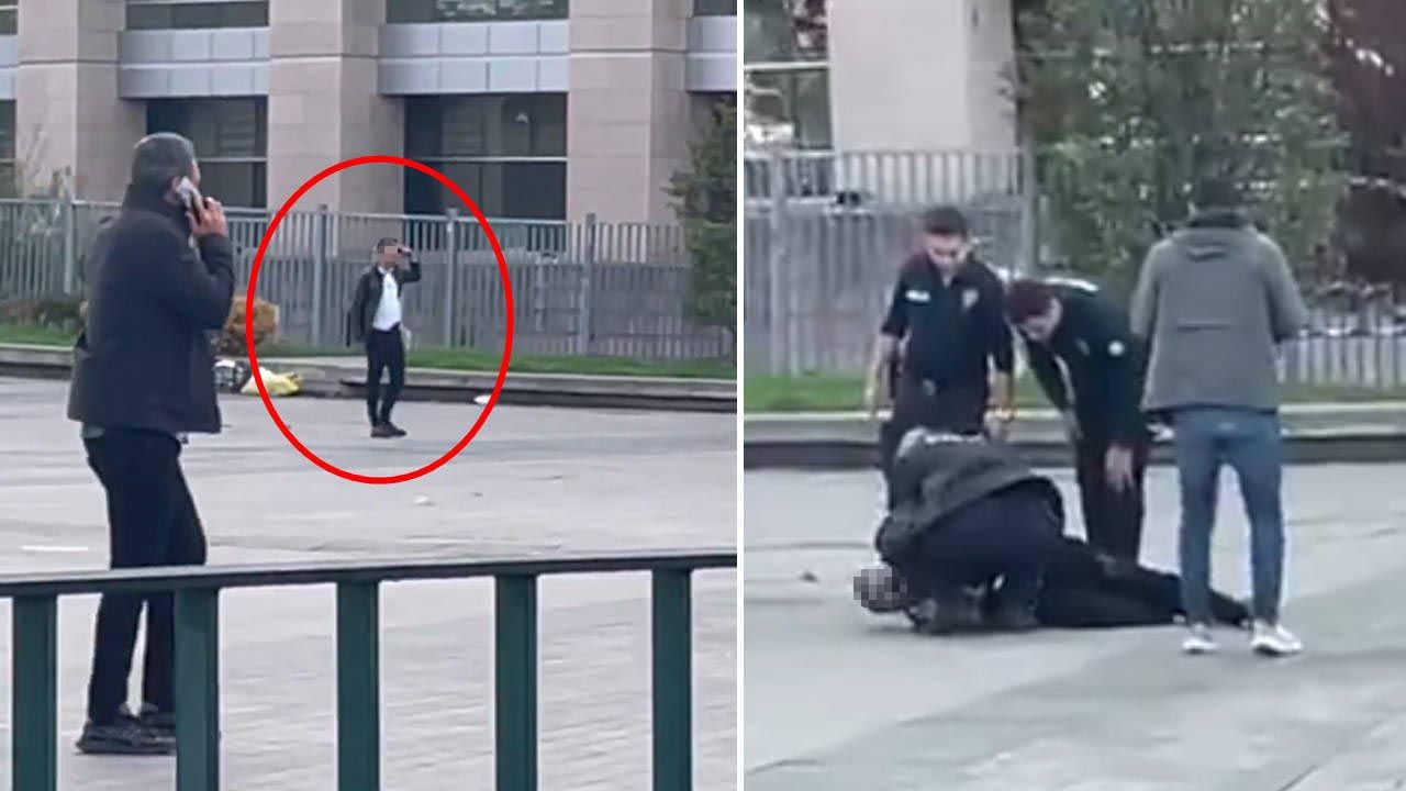 Çağlayan'daki İstanbul Adalet Sarayı önüne silahıyla gelen bir kişi saat 10.10 sıralarında havaya ateş açtı.
