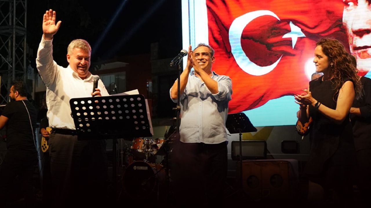 Çeşme Belediye Başkanı M. Ekrem Oran'ın eşi Nuriş Oran’la yaptığı dans performansı yurttaşlardan büyük alkış aldı. Şarkıcı Ege 10. Yıl Marşı ve söz ve bestesini kendisinin yaptığı 100. Yıl Marşı'nı ilk kez de Çeşmelilere söylerken yurttaşlara kendilerine dağıtılan Türk bayraklarını salladı.