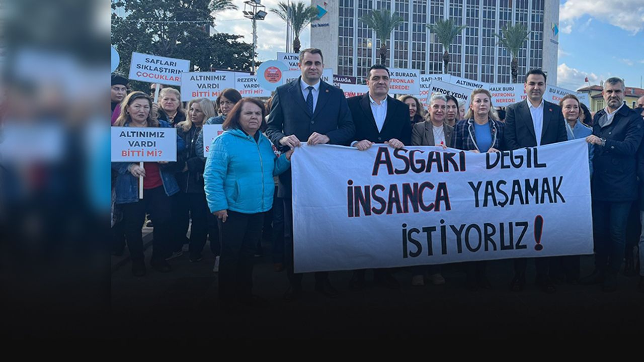 CHP Kadın Kolları Genel Başkanı Asu Kaya ise, “Adına asgari ücret denilen sefalet ücretini kabul etmiyoruz. Bu rakam milyonlarca emekçinin açlıkla yaşamaya zorlanmasıdır. Bu rakam özellikle kadınlar için geçinememenin yetinememenin ve utanmadan dayatılan bir rakamın adıdır. Bu ülkede artık kadınlar hesap yapmıyor, tercih yapmaya zorlanıyor. Bez mi, mama mı? Sebze mi, meyve mi? Bugün hangisinden vazgeçelim, hangisini bir sonraki alışverişe bırakalım diyorlar. Bu yılı iktidar Aile yılı ilan etti ama 28 bin TL ile aile kurulmuyor, aile de korunmuyor. Aile 28 bin liralık açlık sınırının altında kalan gelirle ayakta duramaz. Aile yılı dedikleri şey anneler için boş pazar filesi, boş market sepeti. Çocuklar için yetersiz beslenme, gelişme geriliği. Eğer bu yıl aile yılı ise neden bebek bezleri lüks ve mamalar erişilmez oldu? Çünkü bu iktidar aileyi yoksullukla yönetiyor. Bu ücreti belirleyenler, bu ücreti millete dayatanlar pazara gidiyor mu? Hayır. Onlar pazara gitmiyor, sofra kurmuyor ve çocuk büyütmenin ne demek olduğunu bilmiyorlar. Kadınlar hem çalışıyor hem evin yükünü omuzluyor yani maalesef yoksulluğun hedefi oluyor. AKP iktidarı, bu rakamı belirlerken annenin mutfağına, çocuğun boş tabağına bakmadı. Bir kadının ay sonunu nasıl getirdiğine daha doğrusu nasıl getiremediğine bakmadı. İzmir’den soruyoruz, 28 bin lira hangi kadın kirasını ödeyebilir, hangi anne çocuğunun beslenmesini eksiksiz sağlayabilir, hangi emekçi 28 bin lira ile onurlu bir yaşam sürebilir. AKP iktidarı bu tabloyu bilmiyor mu? Gayet iyi biliyor. Ama bile isteye görmezden geliyor. Bu sefalet bilinçli bir sınıf siyasetinin sonucudur. İktidar, çalış ama karnının doymasını bekleme, üret ama yoksulluğa razı ol. Özellikle kadınsan itaat et, idare et çok fazla konuşma ve sus diyor. Bize sabredin diyorsunuz, bu ülkenin kadınlarına sabrı reva görüyorsunuz ama bu rakam kadınlara sadece çaresizlik veriyor. Bu ülkede insanca yaşamak mümkün değil. Bu sefaletin adı yoksulluk fermanıdır. Asgari ücret yani insanca yaşamanın asgari geliri en az 39 bin lira olmalıdır dedik. Ama sokaktan kopan AKP iktidarı yandaşı tercih etti. Ama bu ücretle 2026 yılı geçim ve refah yılı olamaz. Bu ücretle 2026 yılı geçim yılı, değişim yılı olur. Bu asgari ücret kadınlara yönelik iktidarın ekonomik şiddetidir. Faili de nettir. Bu şiddetin sorumlusu bugünün AKP iktidarından başkası değildir. Bu ücret kadınlara bağımsız olma dayan katlan ve boyun eğ diyor” ifadelerine yer verdi.