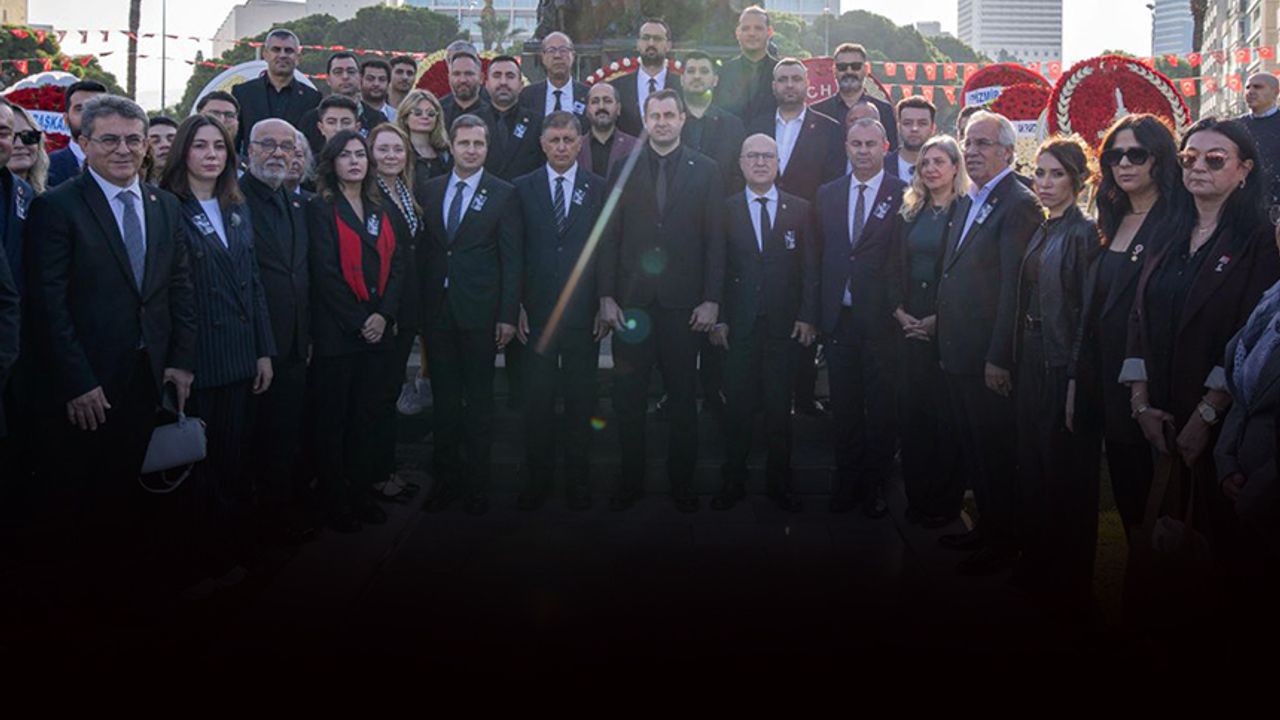 GÜNDEME BAKIŞ – CHP İzmir İl Başkanlığı Atatürk’ün aramızdan ayrılışının 87. Yıldönümünde Cumhuriyet Meydanı'ndaki Atatürk Anıtına çelenk bıraktı. Törene; CHP İzmir İl Başkanı Çağatay Güç, CHP Genel Başkan Yardımcısı Murat Bakan, Parti Sözcüsü Deniz Yücel, İzmir Büyükşehir Belediye Başkanı Cemil Tugay, İzmir Milletvekili Ednan Arslan ve çok sayıda partili katıldı.