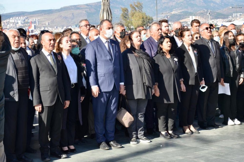 İzmir Büyükşehir Belediye Başkanı Tunç Soyer’de bir konuşma yaparak Mustafa Kemal Atatürk’e seslendi. Soyer, “Gazi Mustafa Kemal Atatürk’ün aramızdan ayrılmasının 83’üncü yıl dönümünde, kendisini sizlerle yâd etmek için bir aradayız. Ata’mızı kaybettiğimiz bugün, 10 Kasım, onun bizlere bıraktığı emanetleri ve bu vatanın nasıl kurulduğunu bir kere daha hatırladığımız ulusal yas günümüz. Gazi Mustafa Kemal Atatürk’ün tarihi başarısı, emperyalizme karşı destansı mücadelemiz Kurtuluş Savaşı’nın zaferle sonlanmasını ve Cumhuriyeti’mizin kuruluşunu sağladı. Atatürk, çağının çok ötesinde düşünen; sadece bu ülke ve milleti için değil “insanlık” için hep daha iyisini düşünen bir vizyona sahipti. Fikri üretimi ve eylemleriyle her daim dünya halklarına ilham veren bir lider oldu. “Yurtta sulh, cihanda sulh” şiarıyla sürdürdüğü politikalar, ülkemize duyulan saygının en temel sebeplerinden biridir” diye konuştu.