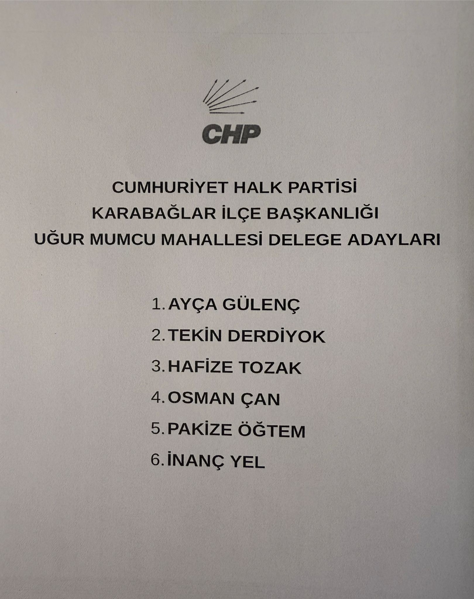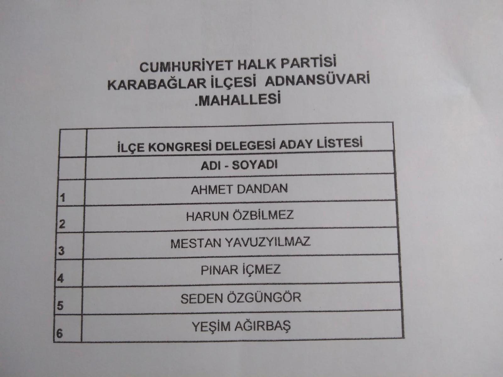 Karabağlar ilçesinde Adnan Süvari, Aydın, Uğur Mumcu ve Gülyaka mahallelerinde tek listeli seçim yapılacak.