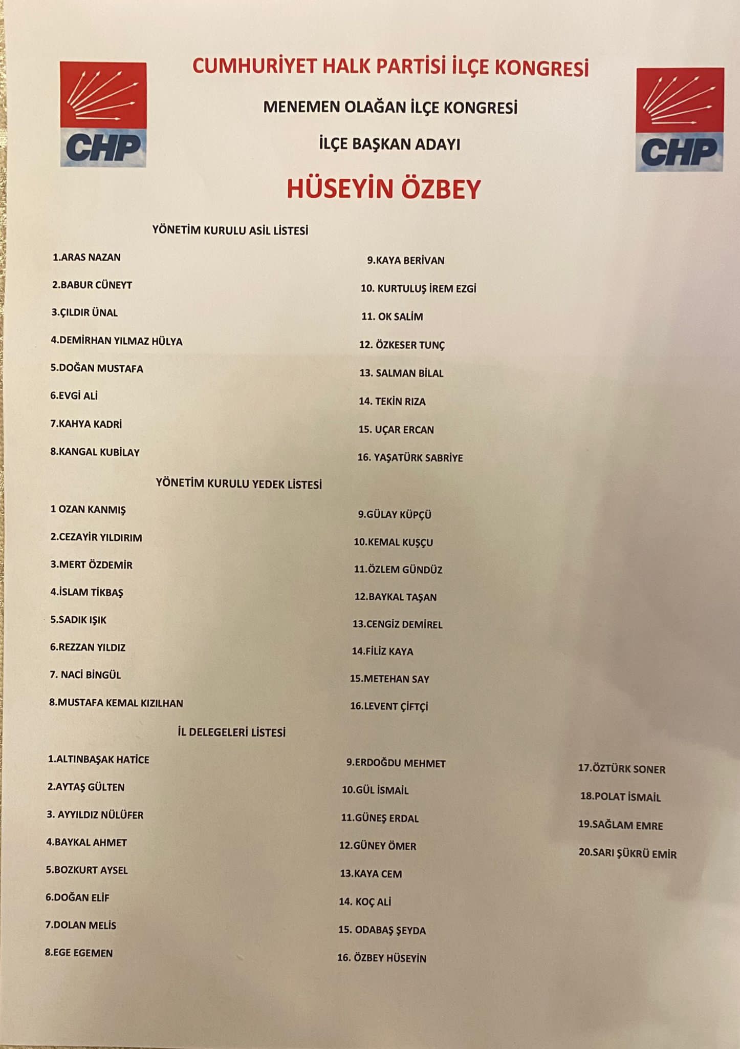 Hüseyin Özbey ile Sadık Tanrıverdi’nin yarıştığı Menemen İlçe Kongresi’nde sonuç belli oldu. Hüseyin Özbey 201 Oy ile seçimi kazandı. Rakibi Sadık Tanrıverdi ise 182 oy aldı.