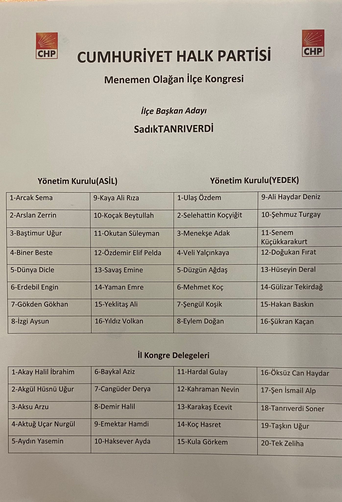 Bizi asıl hedefimize ulaştıracak cumhuriyete, adalete, Atatürk’e beraber inanmış olmak beraber eyleme geçmek ve beraber kazanmaktır. Yaklaşık 2.5 yıl önce olağan üstü bir süreçte ilçe başkanlığı görevini devraldım. Nasıl olduğunu sizler de biliyorsunuz. Atanmıştım ama tek derdim sandıktan çıkmaktı ve sayenizde o da oldu. Bu kardeşinize; partimize ve halkımıza hizmet etme imkanı sundunuz sağ olun var olun. Gelin görün ki işimiz hiç kolay değildi. Partimizin Menemen’de gerçek karşılığını bulması için çıtayı yükseltmemiz gerekiyordu. Genel Seçimlere hazırlanmamız gerekiyordu, aslında kazanılmış bir seçimi kaybettik ama 14 Mayıs’ta AKP’den 11 bin 434 oy fazla aldık ve AKP’ye ezici bir üstünlük sağladık Yüzde 61.5 oy aldık ve 28 Mayıs’ta ise oyumuz yüzde 66’ya dayandı ve 40 bin oy farkı attık.