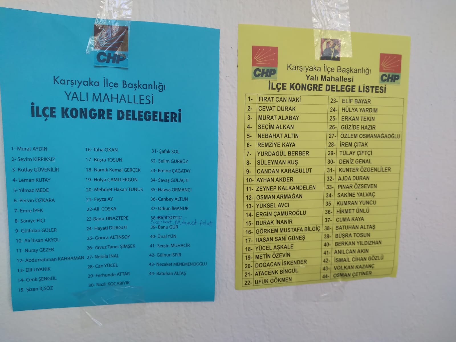 Yalı Mahallesi'nde mavi ve sarı listeler yarıştı. Karşıyaka Belediye Başkanı Cemil Tugay'ın desteklediği mavi listede İzmir Büyükşehir Belediyesi CHP Grup Başkanvekili Murat Aydın yer alırken, sarı listede ise Karşıyaka Belediyesi eski Başkanı Cevat Durak yer aldı.
