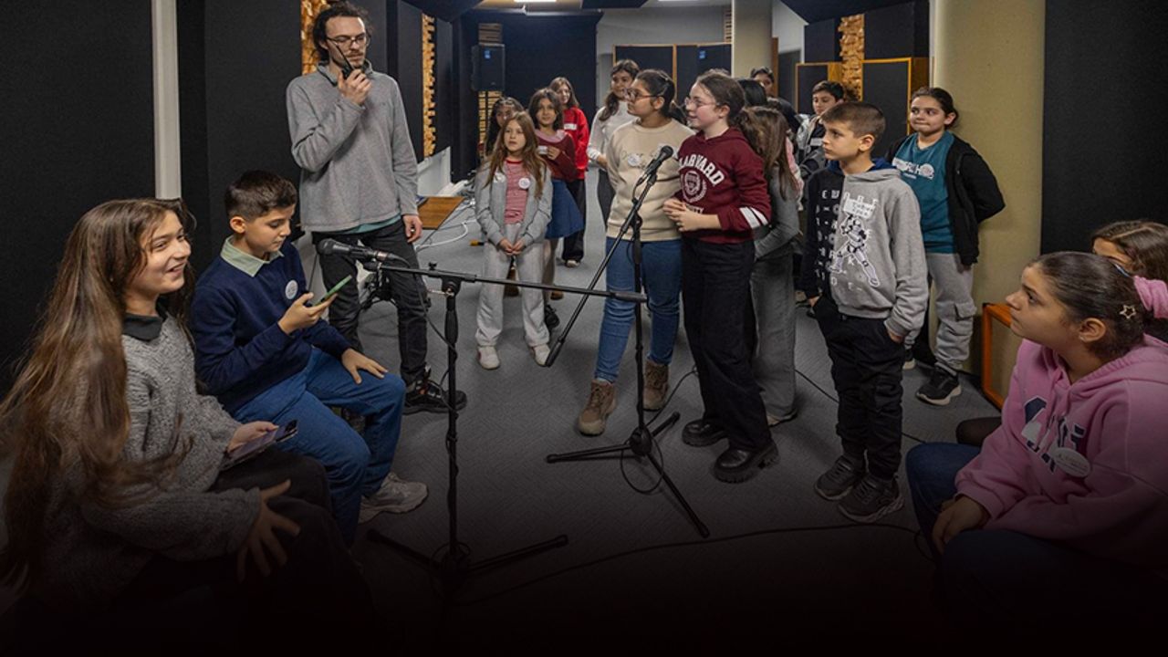 İzmir Büyükşehir Belediyesi Çocuk Çalışmaları Şube Müdürlüğü’nde sosyolog olarak görev yapan Deniz Kesimler Çakal, “Yarıyıl tatilini fırsat bilerek çocuklarla daha uzun zaman geçirmek istedik. Çocukların belediye birimlerini daha yakından tanımasını istiyoruz. Bugün Stüdyo Kültürpark’ta Çocuk Meclisi Sosyal Etkinlikler Planlama Komisyonu üyeleriyle birlikteyiz. Amacımız, kültür sanatla ilgilenen çocukların Stüdyo Kültürpark’ı tanıması. Çoğu daha önce profesyonel bir kayıt odası ve profesyonel bir mikrofon görmediklerini söyledi. Çocuklar Stüdyo Kültürpark’ın nasıl çalıştığını, hangi cihazların olduğunu öğreniyor. Bugün buradan bir hatıra ile ayrılmak istediğimiz için çocuklar bir podcast çekecek, daha sonra birlikte dinleyeceğiz. İzmir Çocuk Meclisi, Başkanımız Dr. Cemil Tugay’ın çocuk dostu kent hedefiyle İzmir’de yaşayan tüm çocukların sesi olmak için, tüm çocukların haklarına kavuşmaları için çalışmalarını yürüten kamusal bir platform. Çocukları eşit yurttaşlar olarak görüyor ve çocukların sesini duyurmak istiyoruz” dedi.