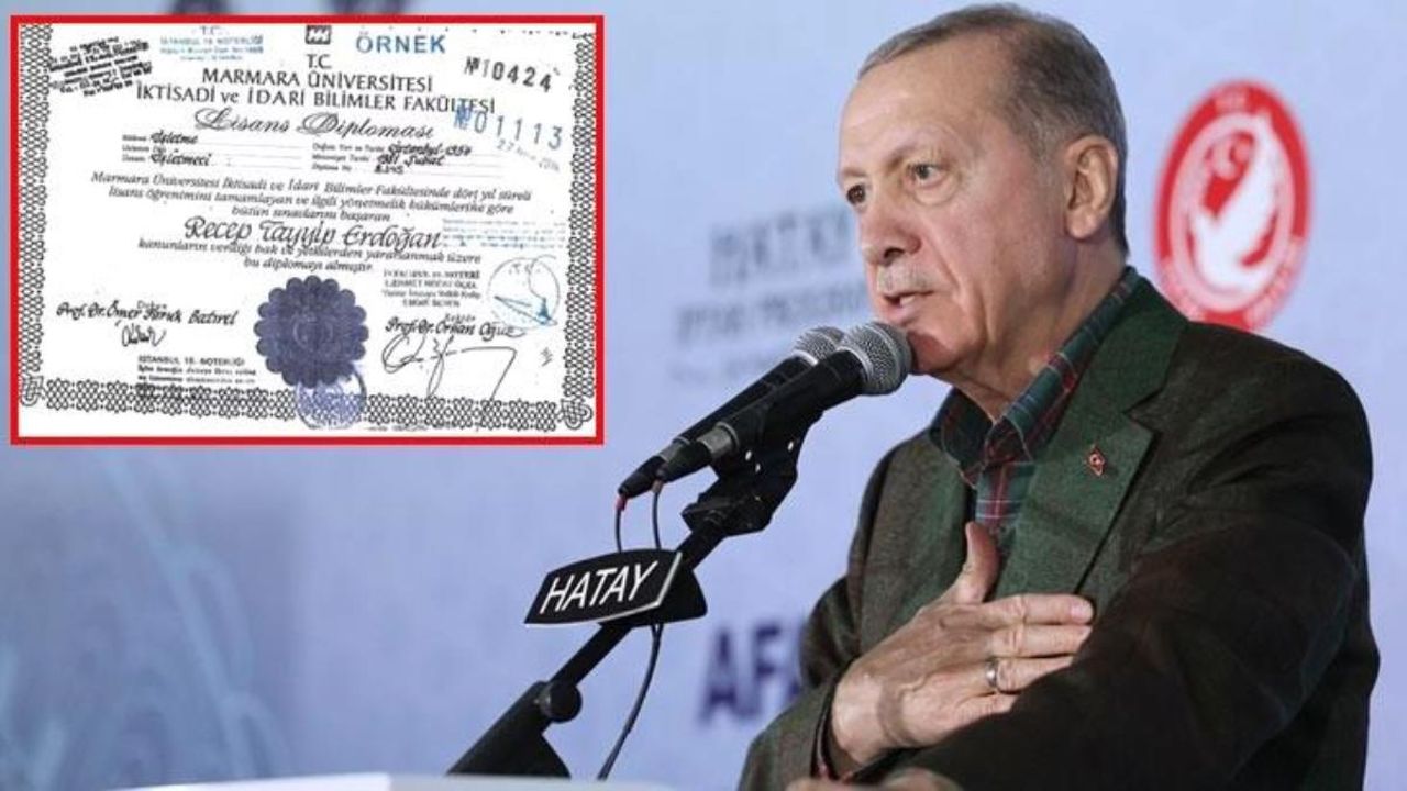 Cumhurbaşkanı Erdoğan'ın üniversite mezuniyet diploması, İletişim Başkanı Fahrettin Altun tarafından kamuoyuyla paylaşıldı. Altun, Tayyip Erdoğan'ın üniversite mezuniyet belgesinin yanı sıra mezunlar defteri, askerlik şubesine yazılan yazı ve okul kayıt defteri gibi resmi evrakları da açıkladı.